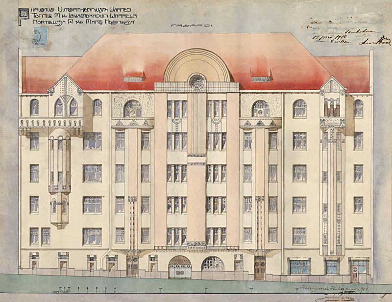 Korkearesoluuttinen julkisivupiirustus saa vapaasti ladata omaan käyttöönsä tästä.